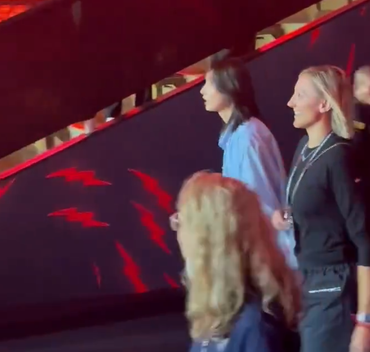 这场比赛两位排坛的巨星都到场观战了——金软景、拉尔森,这两人提前进场等待比赛的开始。
